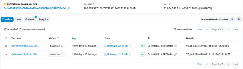Tangkapan layar berikut ini mengungkapkan bahwa sang trader Shiba Inu tersebut kini memiliki sekitar 200 miliar token SHIB, dengan nilai US$1,8 juta. Meski begitu, sampai sekarang, identitas dari trader ini masih menjadi misteri yang belum terpecahkan di dunia kripto.