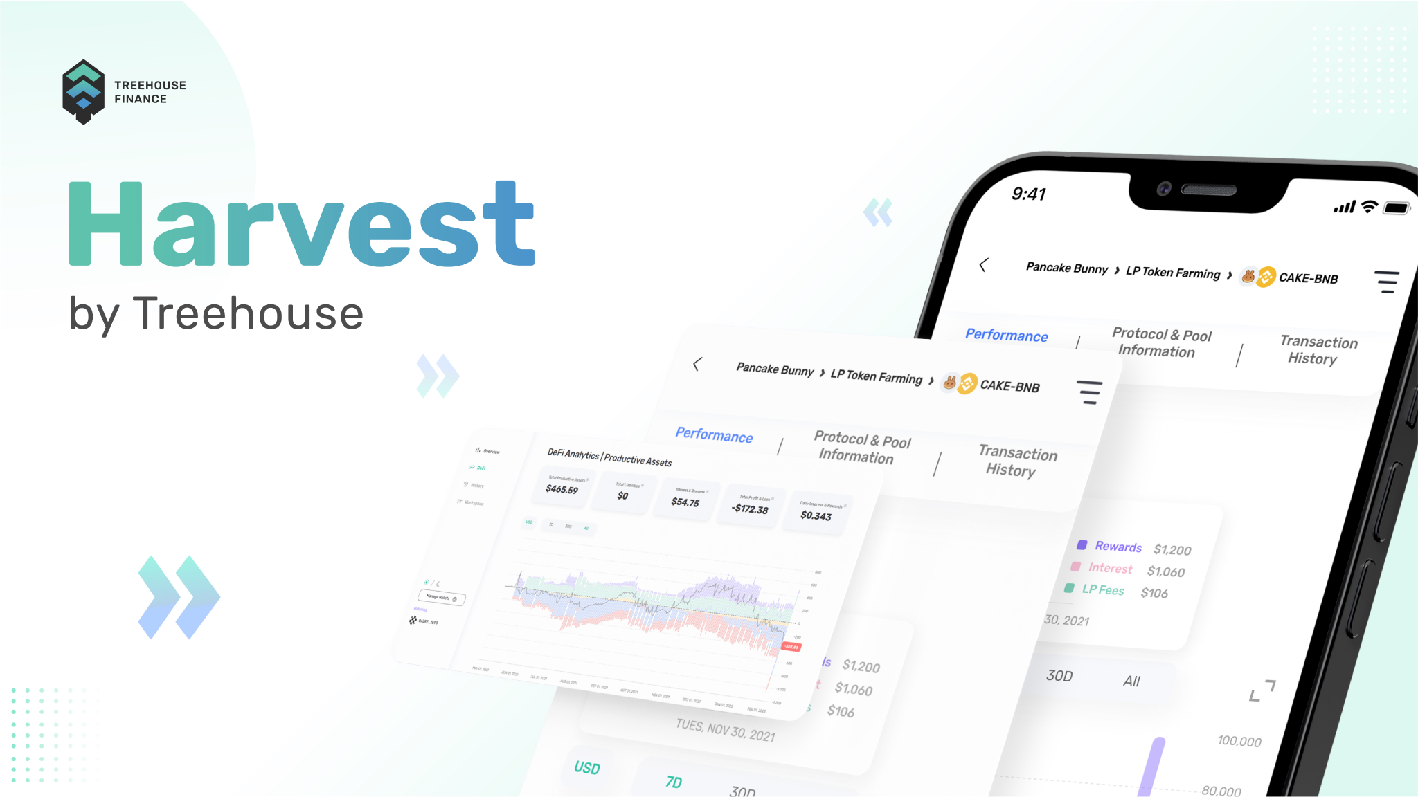 Pengguna BNB Chain dapat mengakses Harvest by Treehouse Finance untuk memantau analisis data tentang posisi investasi DeFi mereka di 68 protokol termasuk PancakeSwap, Venus, Alpaca Finance, Ellipsis, Tranchess, MDEX, ApeSwap, dan banyak lagi.