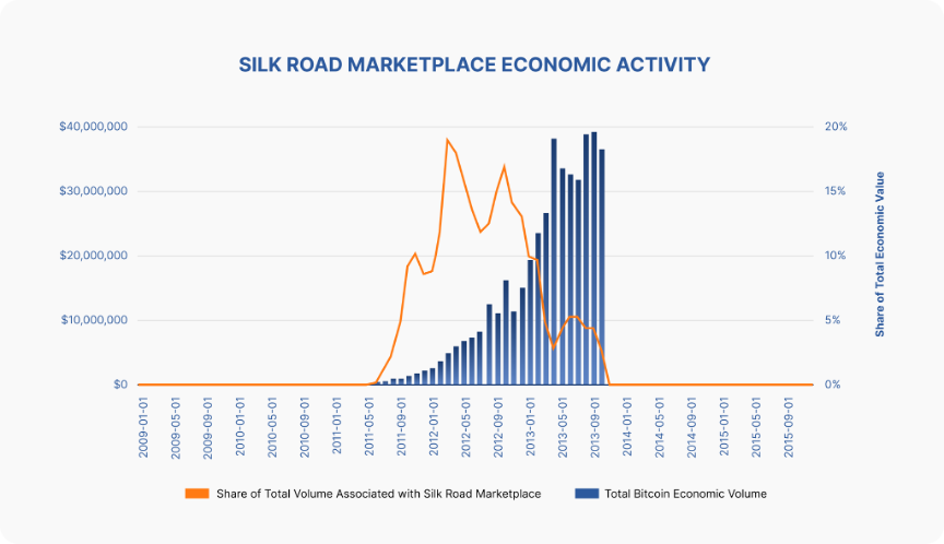Ketika meninjau sejarah kejahatan di dunia kripto, peran Silk Road tidak bisa diabaikan. Ketika situs ini ditutup pada tahun 2013, hampir 20% dari seluruh transaksi Bitcoin berlangsung di sana, yang jelas turut membentuk reputasi awal kripto yang negatif.