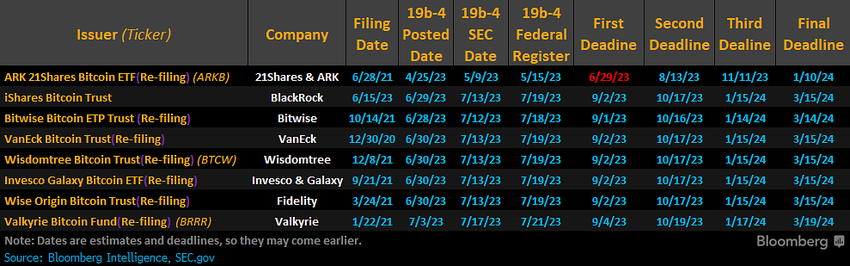 Sementara itu, tenggat waktu pertama untuk Bitwise, VanEck, Wisdomtree, Invesco, Fidelity, dan Valkyrie semuanya berada pada awal September.