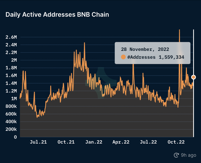 Di sisi lain, pada 29 November 2022 lalu, OpenSea mengumumkan bahwa mereka akan mendukung NFT yang berbasis di BNB Chain. Menurut Nansen sendiri, BNB Chain (sebelumnya bernama Binance Smart Chain) saat ini sudah memiliki lebih dari 1 juta pengguna aktif harian.