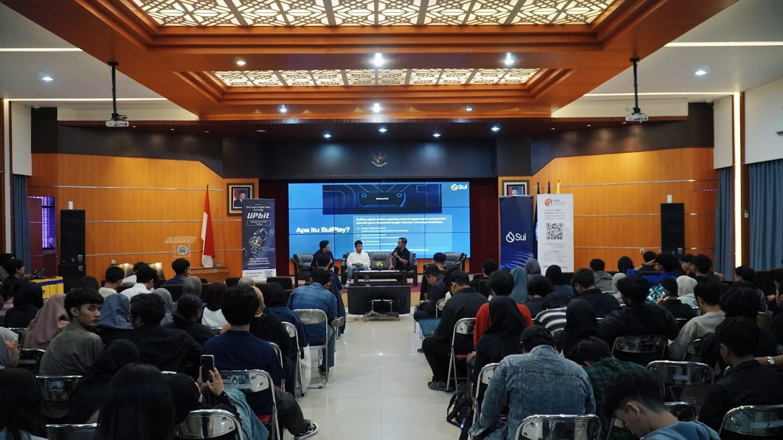 Bertempatan di Aula Ava, Gedung D14 Fakultas Sastra Universitas Negeri Malang, sebanyak 200 lebih peserta menghadiri acara ini. Acara resmi dibuka oleh MC, kemudian dilanjutkan dengan sambutan dari pihak kampus yang disampaikan oleh Bu Anneke Defa Rachmadian, S.Sn., M.Ds., selaku perwakilan dari Prodi DKV UM. Menandai dukungan penuh dari institusi pendidikan terhadap pengembangan kompetensi mahasiswa di bidang teknologi blockchain dan Web3.
