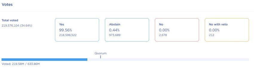 Proposal bertajuk Community Pool Spend Proposal ini memiliki waktu 6 hari lagi sebelum akhirnya disahkan. Berdasarkan pengamatan dari tim Be[In]Crypto, mayoritas pemilih terlihat mendukung implementasi proposal tersebut, pada saat waktu penulisan.