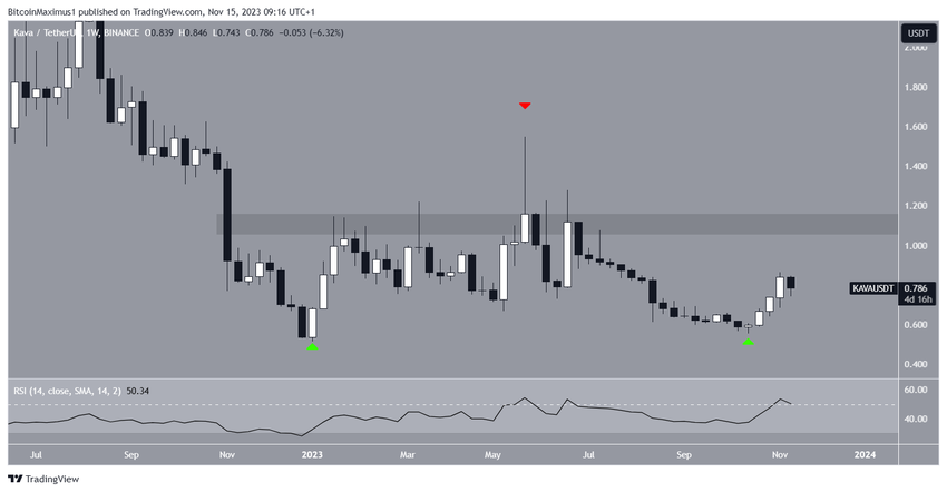 Analisis teknikal pada time frame mingguan menunjukkan bahwa harga KAVA telah menanjak sejak awal tahun ini.