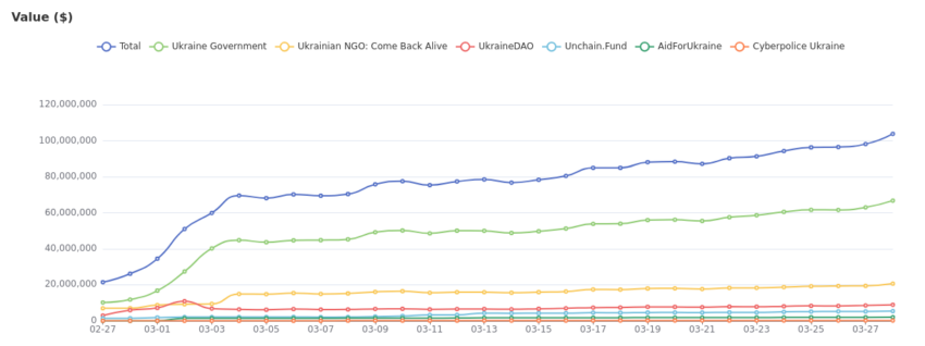 Aset kripto telah memberikan dampak positif kepada pemerintah dan warga Ukraina. Pada saat artikel ini ditulis, negara yang terletak di bagian timur benua Eropa itu telah menghimpun dana donasi lebih dari US$103 juta, menurut data dari SlowMist.