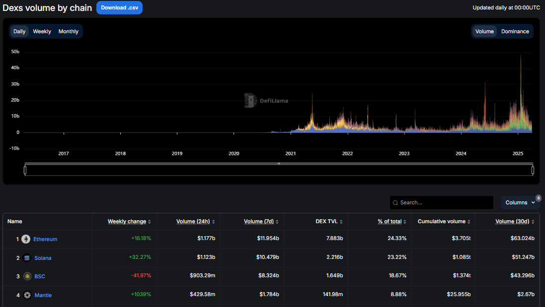 SponsoredEthereum Lampaui Solana dalam Volume Perdagangan DEX
