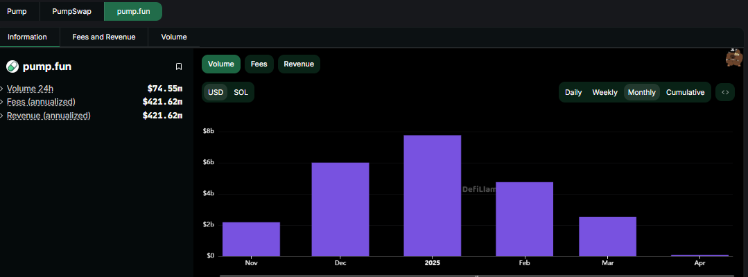 Sponsored SponsoredPump.fun, khususnya, mengalami penurunan tajam dalam volume perdagangan sejak awal tahun. Volume bulanan turun dari puncak Januari sebesar US$7,75 miliar menjadi hanya US$2,53 miliar pada Maret, mewakili penurunan 67%.