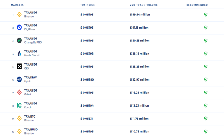 Tether (USDT) dan Binance USD (BUSD) merupakan pasangan stablecoin yang paling sering diperdagangkan dengan koin TRX sepanjang kuartal pertama 2022.