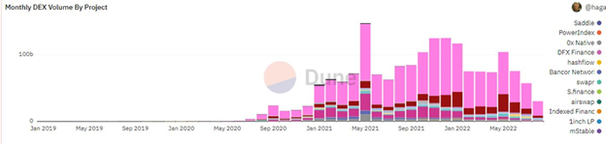 SponsoredProtokol DEX ini mencatatkan volume perdagangan sekitar US$1,53 miliar selama Juli lalu, berdasarkan data dari Dune Analytics.