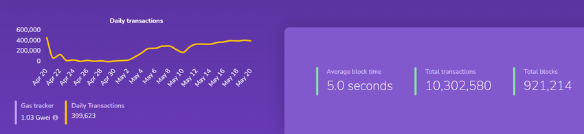 SponsoredSementara itu, jumlah transaksi harian di jaringan ini tercatat naik sejak pertengahan Mei. Sejak tanggal 12 Mei, transaksi harian rata-rata jaringan ini sudah lebih dari 300.000.