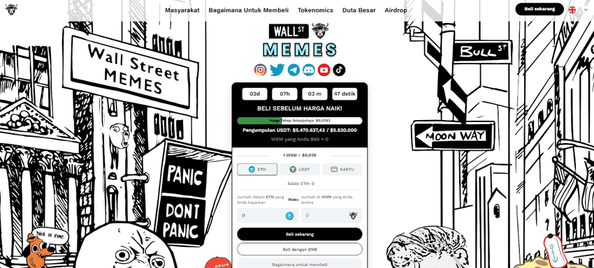 Token WSM, atau Token Meme Wall Street, hanyalah “puncak budaya meme“. Dan memang, proyek meme yang memiliki token $WSM saat ini menjadi token komunitas crypto nomor satu, menambah daftar koin meme yang sudah ada. Lihat cara membeli token Wall Street Memes di sini.