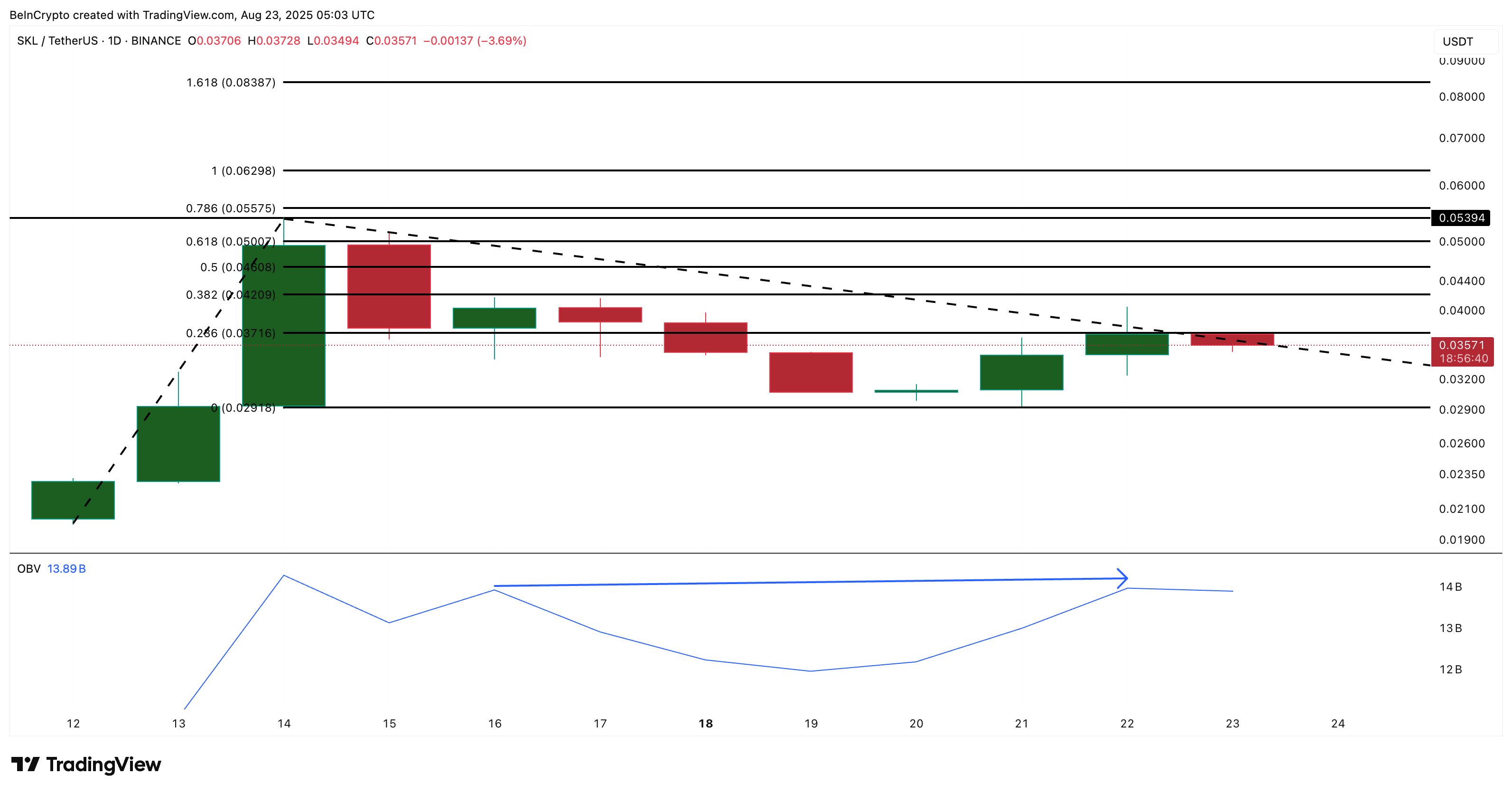 Walau harganya kini sedikit mendingin, SKL masih stabil di sekitar US$0,035, dengan kenaikan kurang dari 5% dalam 24 jam terakhir. Struktur pasar yang lebih luas menunjukkan bahwa pembeli perlahan kembali masuk.
