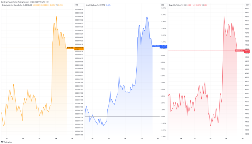 Selain itu, token-token lain yang terasosiasi dengan SHIB, yakni BONE dan LEASH, juga mencatatkan kenaikan harga di periode yang sama. Harga BONE terapresiasi 6,7%, sedangkan harga LEASH naik 8,9%. Kedua token itu disebut siap menjadi komponen integral dari ekosistem Shiba Inu.