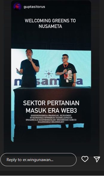 Chief Business Officer (CBO) Greens, Erwin Gunawan, dalam akun Instagram miliknya mengatakan dengan masuknya Greens ke metaverse, masyarakat bisa bertani tanpa mengenal kemampuan, waktu ataupun ruang. Semuanya dilakukan melalui machine learning, artificial intelligence, dan teknologi lainnya.