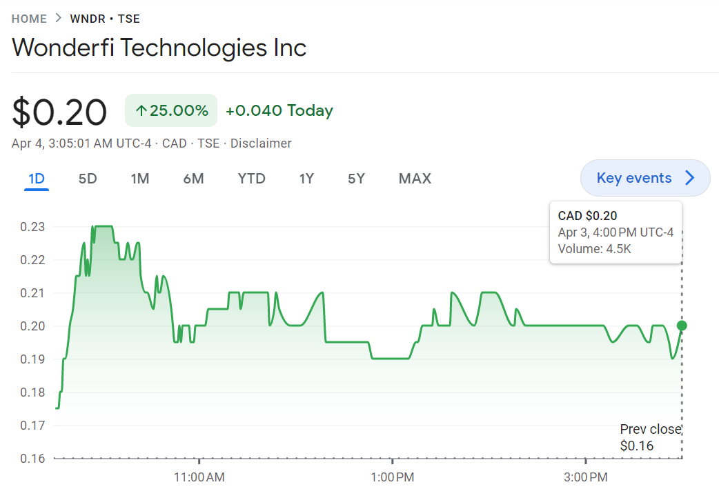 Menyambut penggabungan usaha di antara tiga perusahaan, pasar terlihat girang. Pada perdagangan hari ini, saham WonderFi Technologies terkerek 25% menjadi CA$0,20. Hal itu menandai bahwa pasar merestui langkah stategis tersebut. Tidak mau kalah, saham CoinSmart Financial Inc juga ikut terbang 62,66% menjadi US$0,13 per saham.