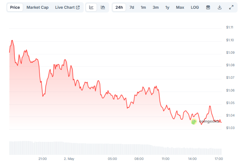 Secara terpisah, pergerakan native token Worldcoin (WLD) pada hari ini terpantau mengalami koreksi. Data CoinGecko menunjukkan pada saat penulisan harga WLD sudah tertekan 5,6% dalam 24 jam terakhir dan berada di kisaran US$1,04.