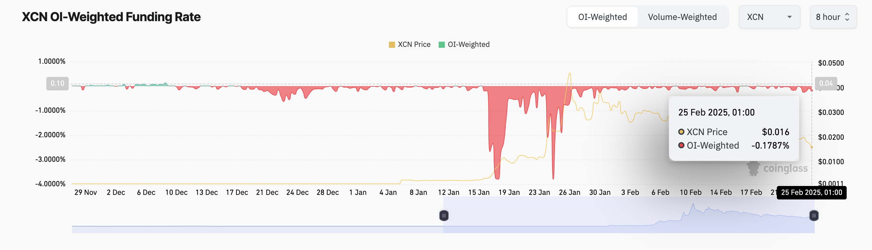 SponsoredFunding rate adalah biaya periodik yang dipertukarkan antara trader long dan short dalam kontrak futures perpetual untuk menjaga harga tetap selaras dengan pasar spot. Ketika negatif, trader short membayar trader long. Ini menunjukkan bahwa sebagian besar trader XCN bersikap bearish dan mengharapkan penurunan harga lebih lanjut.