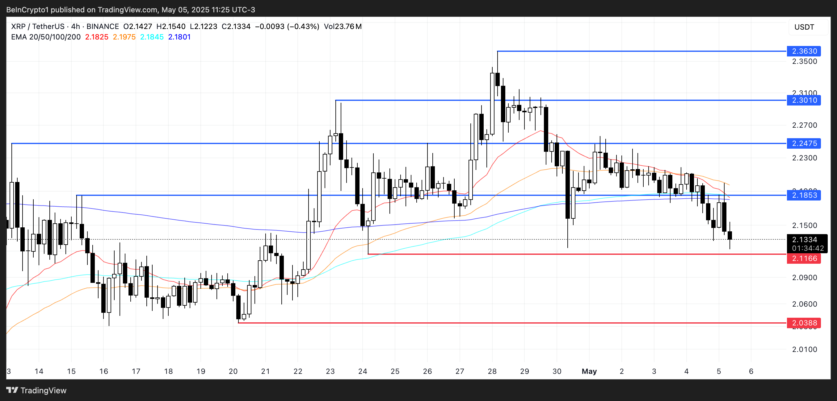 Namun, jika XRP berhasil mendapatkan kembali kekuatan dan membalikkan momentum saat ini, ia bisa menargetkan resistance di US$2,18.