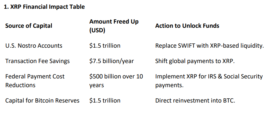 Dokumen ini menjelaskan bagaimana AS dapat menggunakan XRP untuk membuka likuiditas dan berpotensi mengamankan cadangan Bitcoin yang substansial.